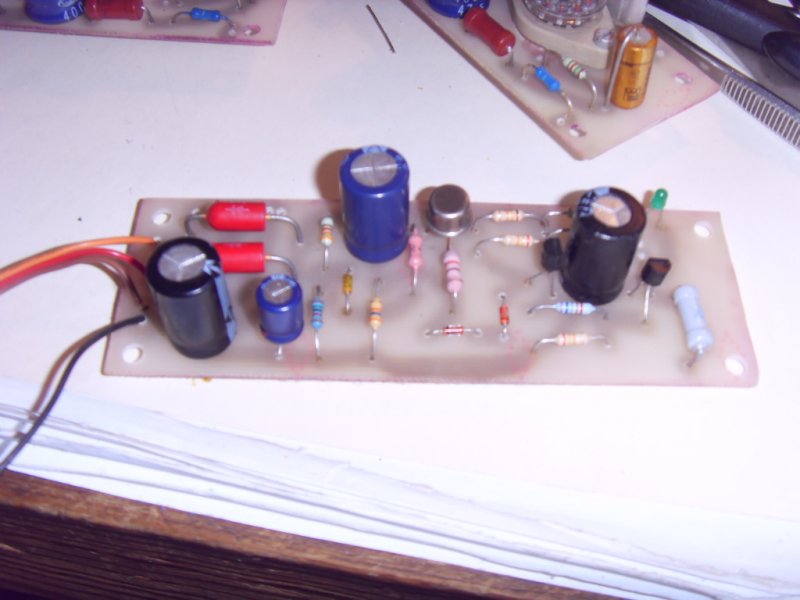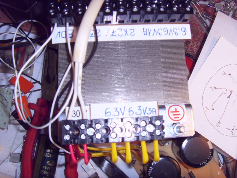 ?Nálam a 200V-os váltó kapott egy greatz-et majd 100 mikrót majd 100ohm/5W-ot sorosan majd 150 mikrót párhuzamosan majd 220ohm/5W-ot megint sorosan majd oldalanként 1-1 47mikrót az anódnak, a G2-nek és az előfoknak ahogy azt a Hans rajzolta. A 47 mikrók már a csőfoglalat melett vannak közel a tett színhelyéhez. Így pontosan beáll a 250V és ez a dupla R-C szűrés is bőven elegendő a brummentes táphoz!