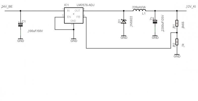 LM2576-ADJ -vel megépítettem egy tápot.24V-ból csinál 9.6V-ot.Hordozható DVD-s tv-t hajt meg, ami max 1.97A-t vesz fel.Tehát az IC megfelel, mert 3A-ig bírja.A 100uH-s tekercs kb:6-7mm átmérőjű éskb:9-10mm magas.3A-est rendeltem.Nem hiszem, hogy ez bírja a 3A-t.Melegszik is.Kimeneten van egy 2200µF-os kondi, bemeneten pedig 100µF-os.Minden a rajz szerint van megépítve.