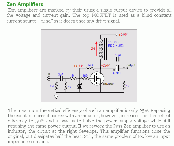 Áramgenerátorral már sokkal lineárisabb átvitelt kapnátok , persze más hanggal . Nem a kiváló paramétereket hiányolom , de az itt alkalmazott tekercsek és egyebek semmilyen paramétert nem tudnak biztosítani . Csak beteszünk egy vasmagos tekercset , lehet hál. trafó primerje , de akár neoncső fojtó is és ez mind jó , tuti . A vas felmágneseződése nem számít , mivel légrés nélküli vasmagos induktivitásokat használtok , ez teljesen nevetségessé teszi az egész próbálkozásotok . Meghallgatjátok és azt halljátok amit szeretnétek , erősen sávhatárolt dinamikátlan csodát . Nagyon kérem valaki végezzen már mérést ezen a csodán ! A látottak alapján már jobban lehetne beszélgetni az eredményről , akár javítani is rajta , mert nagyon ráférne . Csupán szubjektíven megitélni nem lehet , ezt beláthatnád . Hogyan lett meghatározva pl. a kiveheő teljesítményt mérés nélkül ? Úgy hogyan a kapott hang minősége és egyik sem igaz !