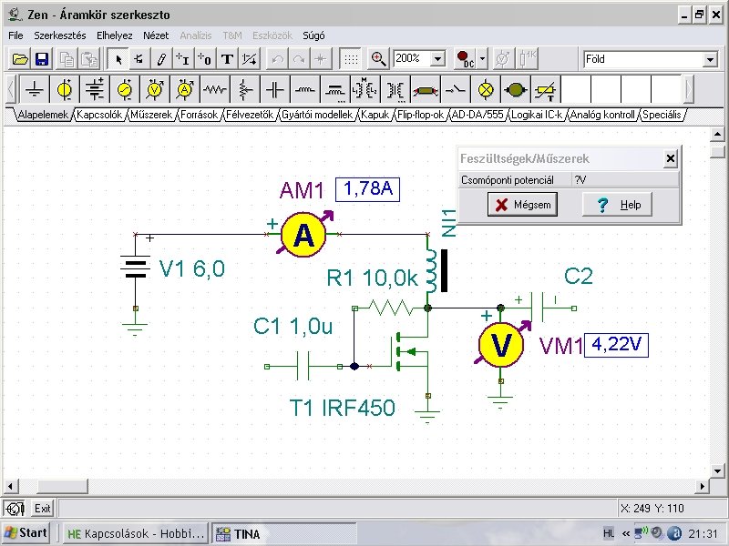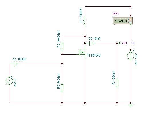 Már megint egy olyan topic jött létre ahol a misztikum az első és senki nem mér semmit! Már leírtam a JLH topic-ban hogy nem az a jó A osztályú erősítő amelyik fűt ezerrel, hanem amelyik a tranzisztor lineáris szakaszába van beállítva a munkapont! Ez a kapcsolás tipikus A osztályú beállítás, bár szimulálva igen csak nagy áramok jöttek ki. Ha április lenne akkor elfogadnám tréfának is, de a szimuláció alapján 24V-os tápot feltételezve az adott kapcsolás több min 38A-t venne fel! Életemben még nem láttam FET-et 10K-s ellenállásal nyitni, mert ez csutkára kinyitja a FET-et. Szinte rövidzárként viselkedik, és nem csak szimulációban hanem a gyakorlatban is! Gyakorlatilag a FET-en csak a szaturációs feszültség esik ami 4,25V. A 150W-os fojtótekercs egyenáramú elenállása szinte nulla! Tehát 38A mellett közel 900Watt füstöli el a FET-et 24V-on. 12 vagy 6 Voltra már meg sem csináltam a szimulációt! Láttam ilyen kapcsolást tranzisztorral, de az csak áramerősítést végzett. Úgy mint ez a kapcsolás is! Elnézést ha túl száraz voltam, de nem hiszem hogy egy csutkára kinyitott FET még erősíteni is képes valamit.....