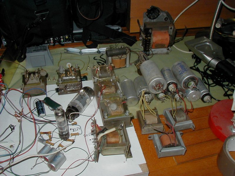 trafókat, meg a nagy kondikat. Persze majd minden szépen be lesz vizsgálva, a kondik megformázva, aztán mehetnek a polcra. A "termés" képen más is látható .