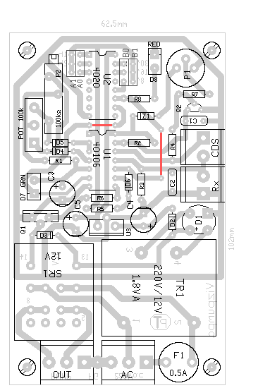 Valamikor készítettem időzítőt szivattyúhoz. Kissé átalakítottam, hogy számodra is megfelelő, legyen. - A ciklusidőt egy átdugható Jumper-el lehet kiválasztani a bináris osztón. A működési és szünet arányát, pedig egy potival változtathatod. (lehet trimmer, vagy külső poti is) - Ha a poti helyett két ellenállást alkalmazol, akkor a szünet és működési idő egymástól függetlenül is állítható. - Itt ez 230V-ról üzemel, de ha a trafót és a relét és a stabilizátort elhagyod, akkor működhet 12V-ról is. (ez 5db átkötéssel megoldható) - Sötétedés esetén megállítja a működést. Ez egy CDS ellenállással van megoldva. Az Rx pontokra kötött ellenállással a ki-be kapcsolás (azaz a fényérzékenység) állítható. - Tartalmaz még egy egyszerű aksi védelmet. A potival beállított feszültségcsökkenéskor nem hozza működésbe az áramkört. üdv! proli007