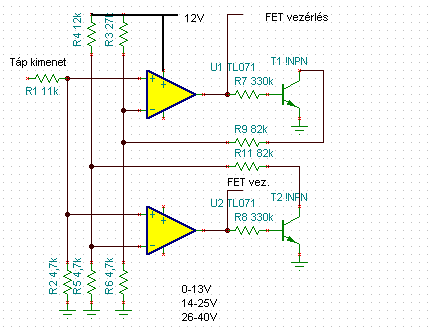 Ha egy TL072-t használnék az olcsóbb lenne, és nem kéne ennyi alkatrész, el lehetne hagyni a kapcsoló fetek előtti tranyót. A kapcsolást már lerajzoltam, de csak papírra, és most nincs időm feltenni. A komparátor referenciáját a pozitív bemenetre kötöm, és ha a kimenet tápfeszre kapcsol, egy sima tranyóval lejjebb húzom a feszt pár tized volttal. Ennyi lenne a hiszterézis.