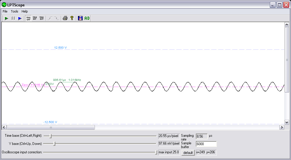 Igen a legmegfelelőbb megoldás az lenne, ha egy másik, mondjuk egy gyári szkóppal is mérnénk frekvenciákat, és összehasonlítanánk a kettőt. Jobban belemélyedve olvastam, hogy a szerző az eredetí oldalon kSampes-be adja meg az értékeket (Samples - minta). Egy AthlonXP 1,7 GHz-es processzorral ellátott számítógép 267kS/s mintavételezésre képes. Szóval 1 másodperc alatt 267000 mintát vesz. Pentium MMX 233MHz =180kS/s Pentium4 1,6GHz = 257kS/s