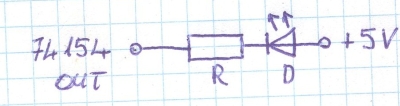 Kaptam egy feladatot a suliban, hogy a PLC-hez kellene csinálni egy demultiplexeres kapcsolást, hogy még több kimenetet kapjunk (a PLC-hez van bővítő egység, csak a kettő összekötésére szolgáló kábel nincs ). SN74154-el (adatlap) kellene megoldanom, ezt a kapcsolást kaptam, csak nem vagyok benne biztos, hogy jó-e. Valaki megnézné, hogy jó-e vagy kell-e rajta változtatnom valamit?