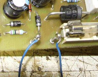 Az R6 és az R10-essel megvalósuló osztót úgy kell beállítani, hogy a feszültsége épphogy ne haladja meg a D1 katódján lévő feszültséget, táp terheletlen állapotában.