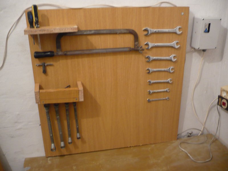 A szerszámos táblán a fúrószáltartó szögelve lett,azt nagyon elrontottam,mad megerősítem csavarral.