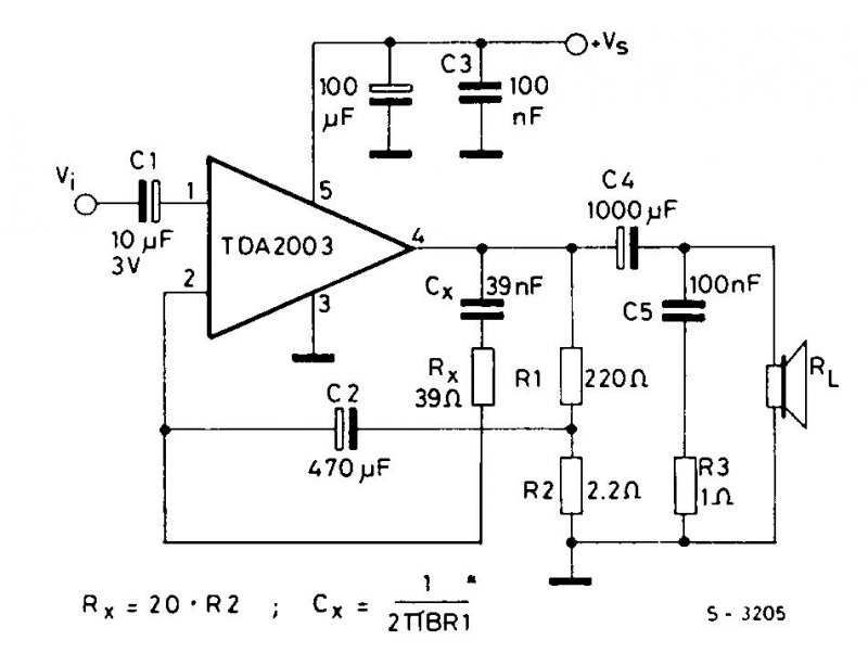 Nagyon zavar a sok + és - jel a hangszóró és a bementet jelölhetnéd másként is, nehogy a bemenetre kapcsold a tápot véletlenül! A bemenetre 10µF kell az adatlap alapján nem 2,2µF bár lehet hogy az is jó, nem vagyok erősítő témában jártas! A Te általad plusznak jelzett hangszóró kivezetésnek a 100nF és az 1000µF között kellene lennie, az 1ohm-nak meg a földhöz kellene kötve lennie.
