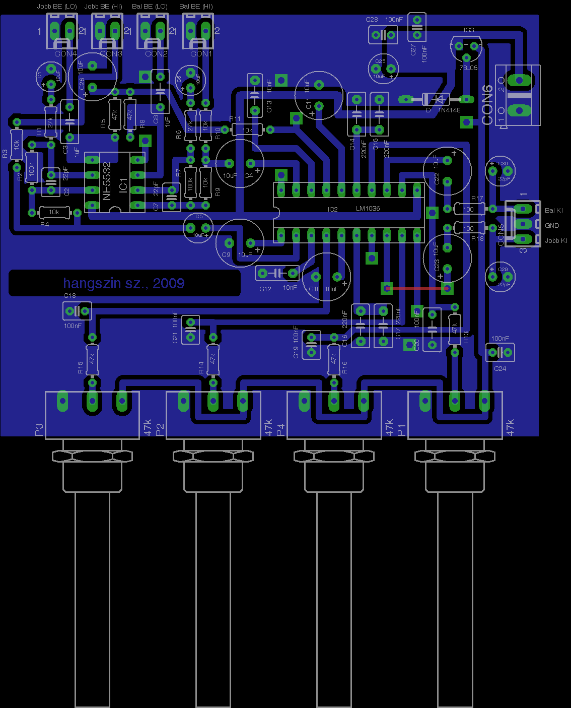 hello megépítettem az LM1036+NE5532-es előfokot amit kapcsoltam ide az lenne a kérdésem hogy az üres pontokhoz mi megy? légyszi segitsetek