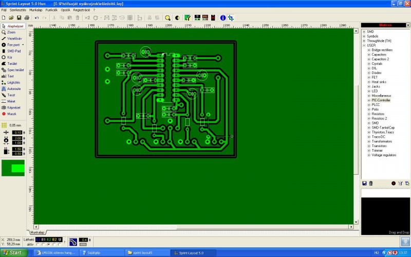 sztem alulra kell raknom az ic-t mivel a többi is máshogy jön ki az a baj h az ic-t ma kaptam meg hozzá és csak most vettem észre a nyákot filcel rajzoltam ki mivel nincs más teknikám hozzá gondolom ott lett fordítva a rajz még az lenne a kérdésem h a hangkimenetére 10uf-es kondi kell ? mivel én a rajzon nem találtam milyen kéne rá előre is köszi