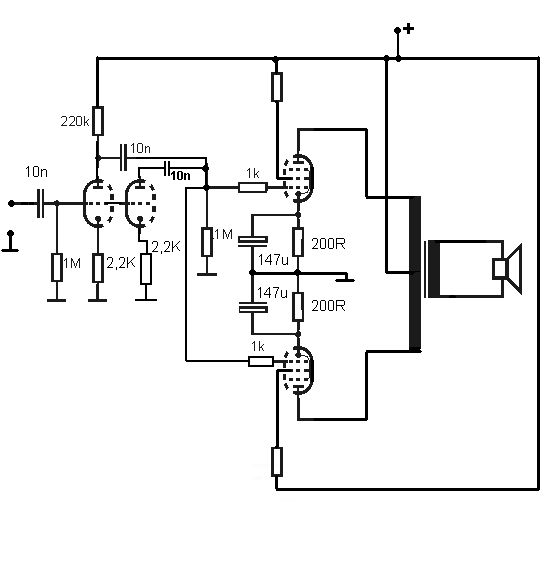Ha van kedved dobd össze ezt a kapcsolást, emlékeim szerint ez volt a leginkább hallgatható, talán a képkimenővel. Akkor még csak 200V-nyi tápom volt, ha magasabb feszről járatod akkor 220, vagy 270 ohm kell a pentóda katódjába.