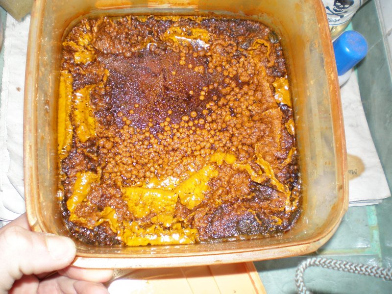 Sziasztok. Ma gondoltam maratok egy nyákot, de a vaskloridkristályból oldott vaskloridom elég ijesztöen nézett ki a dobozból felém. Le volt fedve. Mintha kikristályosott volna, helyenként meg is keményedett. Nem nagyon akar oldódni.