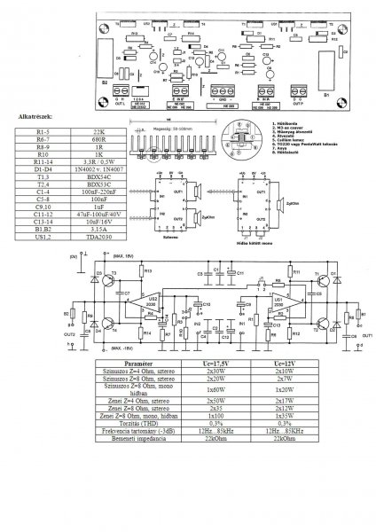 Köszi a választ. Akkor a tranyók maradnak.(BC 301-303) Az Ic-t lehet akkor helyettesíteni Tl072-vel mert csak ilyen van itthol? A végtranyóknak meg jó lesz BDX 53-54? Nem akarok közel se annyi teljesítményt kivenni mint amit a BD249-250 tudna.