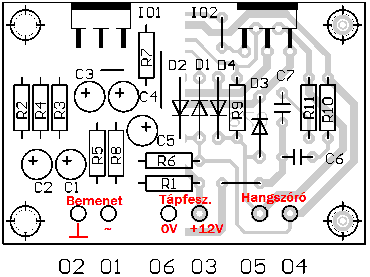 belinkeltem kapcsolási rajzot és a nyák rajzot és az a gondom hogy nem tudom hova kell kötni bemeneti hangot a tápot és a kimeneti hangot addig rájöttem hogy az alsó hat karikákhoz de nem tudom melyik melyik.