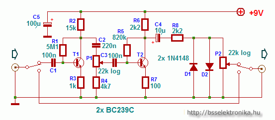 A föld is jelölve, az 1k - 4.7k - 100 ohm, a diodák oda vannak kötve, és a telep negatív sarka. Oda kell a kábeled árnyékolása, és az erősítő felé a kábel árnyékolása is. Általában érdemes árnyékolt dobozba tenni és azt is a földre kötni. tremolo: generalguitargadgets, diystompboxes, shematicsheaven stb. oldalakon rengeteget találsz, v. google is ad millio találatot. Nem bonyolultak, csak hosszú távon tossz hallgatni - mintha az agyadat lökdösnék.