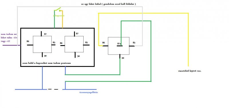 de a motortiltás cuccban tudnál segíteni ? arra gondoltam hogy a rejtett kapcs reléjéből kijövö 87 es lábról kijövö vezt elvágom és rákötöm a riasztó 30as ágát és a 87a ra pedig a másik végét . így nehéz inkább paintelek egy kicsit remélem érthető leszek.ez így működik ? a riasztó ból kijövő kábel (+) v (-) általában ? köszönöm ...
