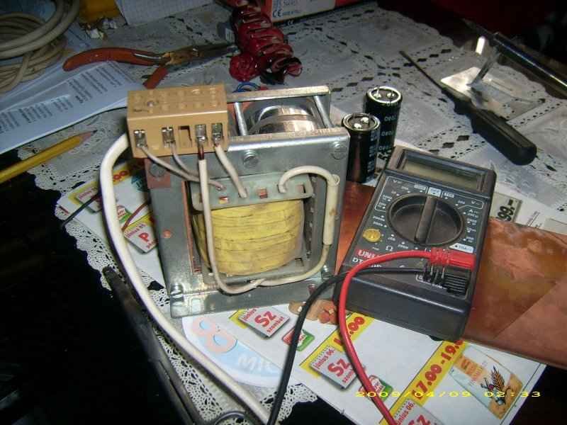 Végülis újra megtekertem a trafót 56-56 menettel 1 mm átmérőjű vezetékkel.