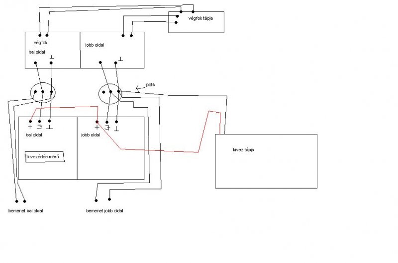 Sziasztok.Van egy házi készítésű végfokom.Akartam beletenni egy-egy kivezérlésmérőt a csatornákra.Tettem bele egy pici trafót hogy,ne a végfokéról menjen.A bementet szabályzó poti közepére kötöttem a kiv.mérőt (ahol a végfokra megy).A poti szélén volt a test.Mikor beindítottam a kiv mérővel a végfoknak kicsi,zajos,torz,erőtlen hangja volt.Mikor levettem a a kiv mérő + kábelét akkor megint jól szólt a vég.Mi lehet a gond??Esteleg az hogy,a trafó - kivezetése a potin kersztül a végfok árnyékolásával(hidegpontal)össze van kapcsolva???Mert csak így tudtam megoldani mert a kiv mérőn a hjideg pont meg tápfesz - ága egyszerre van kötve.Mi a baj???