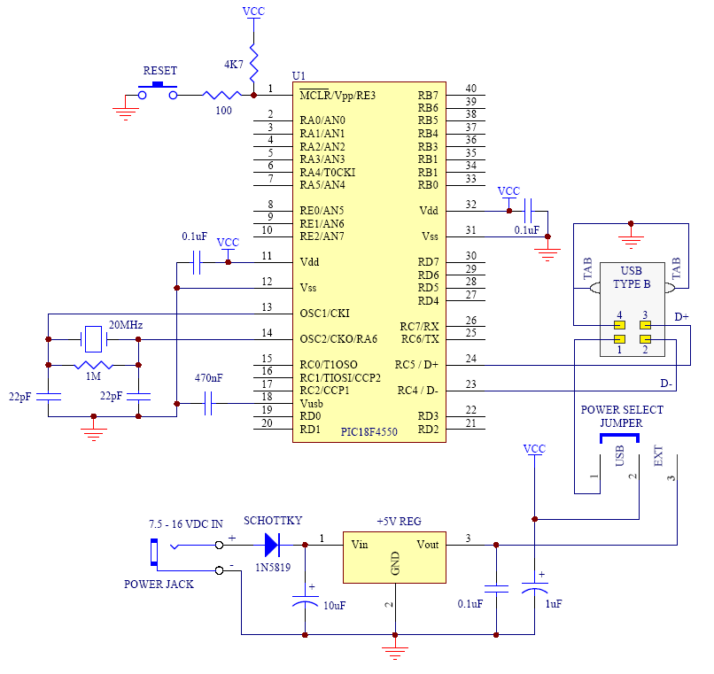 Idézet: „Nem, nincs rákötve semmi az USB-re” Ez nem az USB (az a D+, D- láb lenne), hanem a VUSB, a belső stabilizátor kimenete. Az adatlap szerint minimum 220 nF kell rá. A konfigurációs bitek hogy vannak beállítva? u.i.: az Interneten talált egyik alapkapcsolást mellékelem.