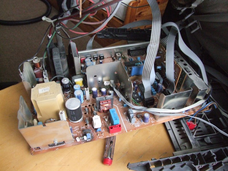 A tápkörben kicseréltem az elkókat. Sajnos ez nem segített rajta. Lefényképeztem, hogy mit produkál még mindig. Bekapcsoláskor sokáig semmi, majd a 34-es képen levő ábra villog a képernyőn, végül bejön a kép. A kép a 31-es képen alul csíkos és az alsó 1/8-ada a képnek nem is látszik. Egyéb ötlet a javításra, valaki?