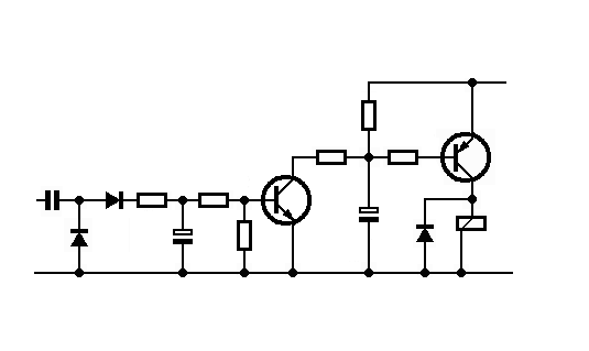 A bejövő hangfrekvenciás jel egyenirányítás után az NPN tranyót nyitva tartja, a kollektorában lévő ellenállással pedig az elkót - ami a jel megszűnése utáni időt határozza meg a töltőellenállással együtt - kisütve tartja. Emiatt a relémeghajtó PNP tranyó is nyit, relé húz. Ha a bemeneti jel kimarad, az elkó elkezd töltődni, ami majdnem a tápfesz eléréséig tart, mikoris a PNP lezár, relé ejt. A működtető feszt az ATX készenléti tápjáról lehet venni.