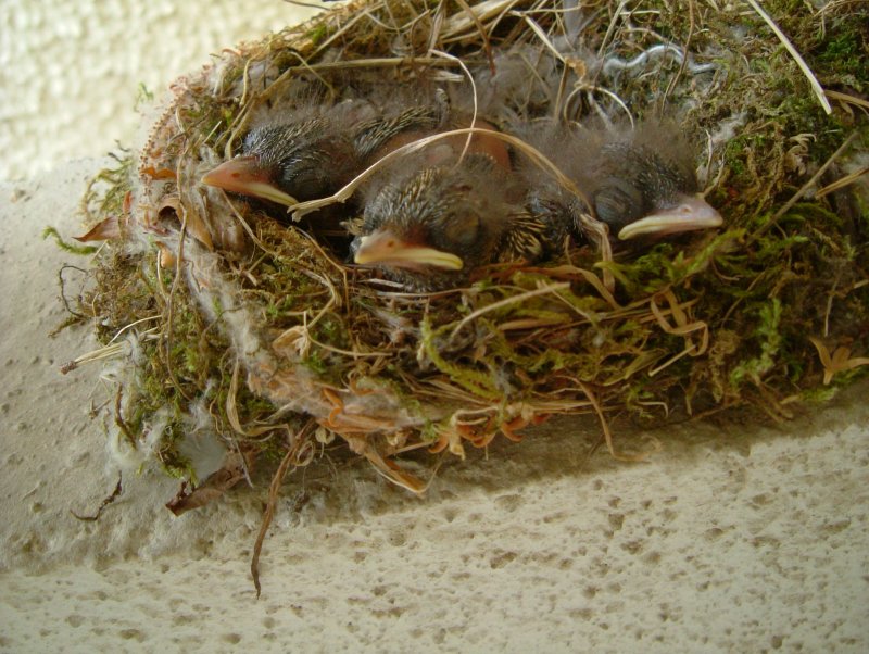 Most nemrég befészkelte magát az erkélyünkre valami énekes madár és mostanra már 3 fióka nézelődik a fészekből várva a kaját. sikerült lekapnom őket