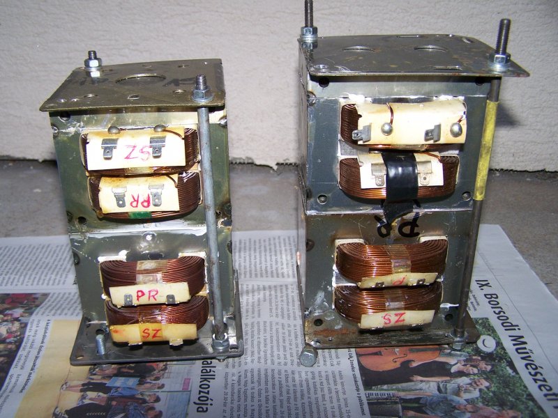 Közzéteszek egy pár képet hol tartok. A trafók megvannak és a kompresszor is 80%-ban kész. Az egyenirányításon gondolkodom hogyan legyen. Nem tudom , hogy a három trafó szekunder tekercsét össze lehet-e így kötni deltába mikor a trafók külön vannak. Esetleg ha valaki tudná a választ jó lenne. Nem jó így saját magammal beszélgetni .