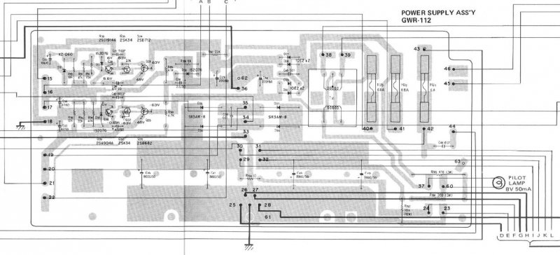 Van egy problémám. Pioneer SA-7800 tápjában a kis teljesítményű rész kapott egy rövidzárat, mikor szereltem össze, mert véletlen benyomódott a bekapcsoló gomb, a fém fedél meg pont akkor ért hozzá a bemenetválasztó nyákjához... Látszatra csak a két kis 800mA-s biztosíték ment ki, tüzetesen megnézve minden alkatrész jónak látszik. A tápból most a +-46 helyett +-66V jön ki, valamint konstans hangerejű brum szól mindkét csatornából, gondolom begerjedt valami, mert az equa is egy panelon van a bemenetválasztóval, és a tápjuk is közös. Maguk a végfokok elvileg jók, mert a brum mellett a zene is hallatszik, és a védelem sem old le. Méregettem a tápon, csináltam is képeket a dologról, szerencsére felleltem a gyári beültetési meg a kapcsolási rajzot. A zöld értékek stimmelnek a rajzon lévőkkel, a pirosak nem. A kis alkatrészek jónak tűnnek, talán a 3-3 tranyóval lett valami.