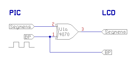 - Az XOR bemenetét és az LCD BP lábát, meg lehet hajtani, egy négyszöggenerátorral. De semmi akadálya, hogy a jeleket procival készítsük el, csak a logikája stimmeljen. A különbség, hogy programba írjuk az XOR műveletet. Viszont akkor állandóan ezzel kell foglalkoznia a procinak. (Emlékeim szerint erre a meghajtásra van azért több külön cél IC is. pld. AY0438)