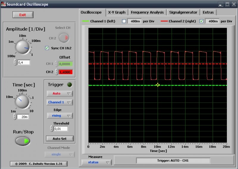 AVR-re írtam egy egyszerű progit ami négyszögjeleket állít elő és a kitöltést potival lehet szabályozni.Ezt a jelet egy feszültségosztóval leosztom kb 0,5Vra. Van egy olyan progim ami a hagkártyából csinál egy nagyon egyszerű ossziloszkóp szerűséget. Ezzel néztem a jeleket. Észrevettem hogy a négyszögjelnek a nulla vonal (nem tudom mi a rendes neve) alatt is van része. És ezt nem értem hogy ez hogyan lehet. Az AVR 5Vról jár, nem hiszem hogy szimmetrikus négyszögjelet álltana elő.