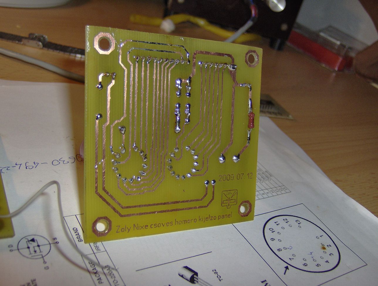 Haladtam ma a NIXE csöves hőmérővel.. Kész a kijelző panel.. A panelt elkészíteni 18:45 kor kezdtem azelőtt terveztem.. igyekeztem hogy ne kelljen 8 óra után fúrnom mert a szüleim nem díjaznák A sietségben lemaradt a tervezésről a glimm áramkorlátozója.. Ezért vágni keltet majd közbeiktatni.. Ezt szégyellem az egész panelban No de ez nem a világ vége, úgy gondolom hobbiban ez még elfér.. Üdv!
