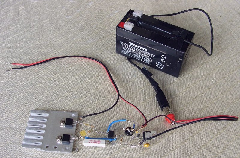 Egy 1.3amperórás feltöltött ólomzselés aksiról tápoltam meg a próba alatt.