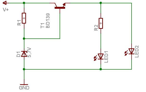 a ledek elé gondoltam 1-1 ellenállást ami a megfelelő áramot átengedi csak a zénert nem tom hogy kell bekötni?? szimplán elé?v hogy? üdv.david
