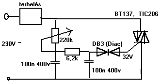 elég egyszerű bármien alkatrész jó bele, nem fontos azokat belerakni amiket odaírtam. " T: U>=230V I>=0,5A" "Triac: U>=230V" Ebben a kapcsolásban a Triac 600V 8A bír aszem ez kicsit több mint 500W
