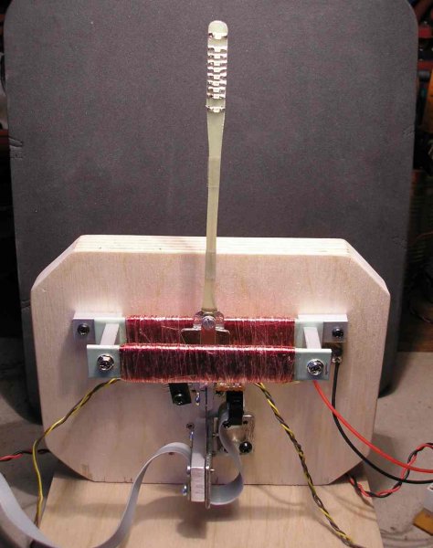 Most egy újabb mechanikával folytatom a további fejlesztéseket. Az asztali kivitelű váz lényegében már meg is van. A lengőkar 8 pontos kijelzéssel még ezután készül. A mechanikát egy régebbi karral szereltem, ezzel tudok kisérletezni a káros berezgés csillapitásának megoldására. Tudom, nyomatékot csak "ellen" nyomatékkal tudok kiküszöbölni. Ezen a mechanikán ezt akarom majd elérni. Néhány felvétel az eddigi munkáról. Az alaplap és az előlap két egyforma, 15mm*160mm*130mm-es "nehéz" rétegelt falemezből készült. A tekercspár egy egységben szerelhető módban lett kialakitva, igy bármikor "átültethető" más, újabb verziókba. Szia.