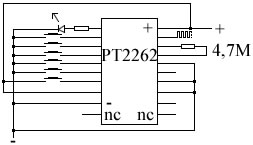 Hát nem akar működni! Megméretem a gyári adó (PT2262) oldalon levő ellenállást és az ahogy elő van írva 4,7M. A vevő oldalra (PT2272) így 820K ellenállást használtam, de semmi reakció. Próbáltam a BC-NBK vevő modult közvetlen a 14 lábra csatlakoztatva is meg egy NPN tranzisztorral is. Valamit nagyon nem jól csinálok. Előfordult hogy valami oknál fogva nagyon ritkán, de kivillant a vételt jelző led, de semmi köze nem volt az adóhoz. Nem tudom hogyan tovább.