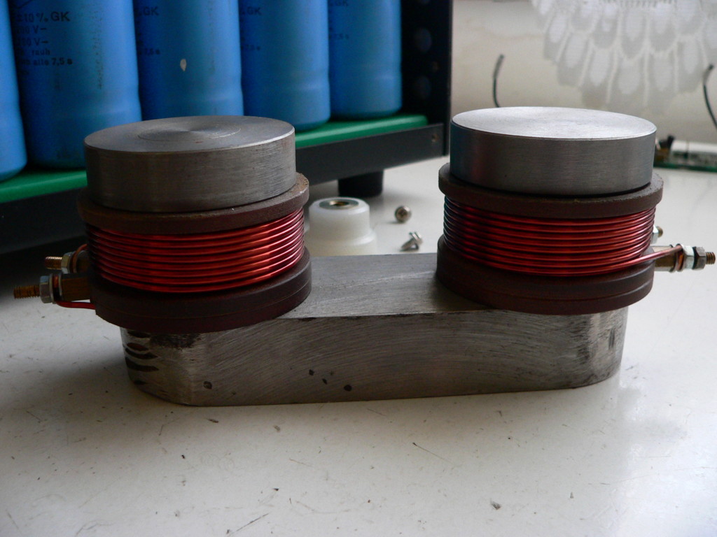 A legjobb megoldás,ha a tengelyre csévélsz legalább 1.5mm átmérőjű huzalt,minél több annál jobb,és erre sütöd rá a kondibankot,csak ügyelni kell,hogy ha már egyszer rákapcsolod akkor az áramkör ne szakadjon meg. Nálam ezt 2000A-es tirisztor oldja meg. Rá tudok szabaditani,ha szükséges 1Kw/s energiát is. Nem is volt még olyan mágnes amit ne tudtam volna átmágnesezni....