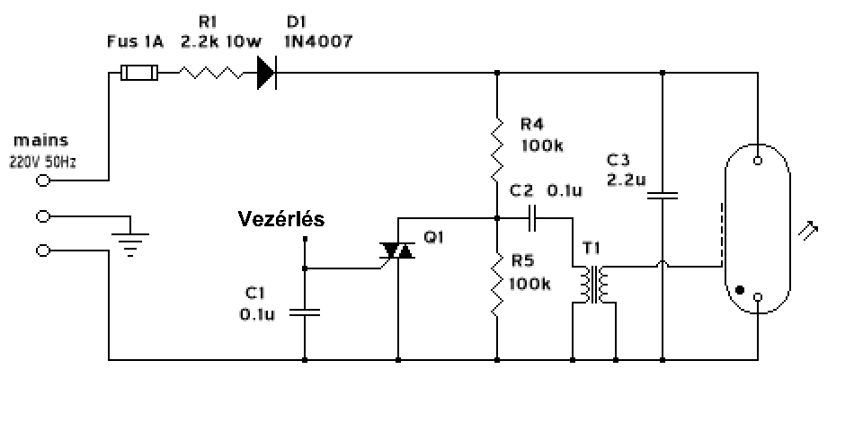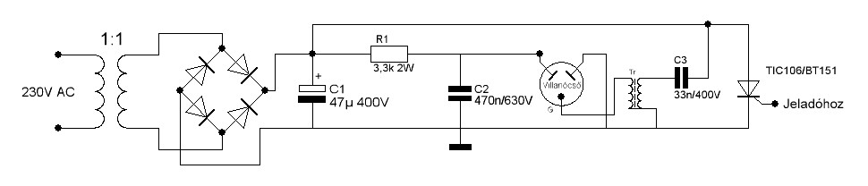 Most viszont mindkettő rajzodhoz az lenne a kérdésem, hogy ugye a 33-100nF-os kondit valami nagyobb ellenálláson töltjük (100k-1M). Azonban ez lelassítja a töltést, és attól tartok, hogy pl. 250Hz-en már kifogyunk a szuflából. Próbálgatok kicsit, szerencsére még van tartalék tirisztorom. Köszi a segítséget!