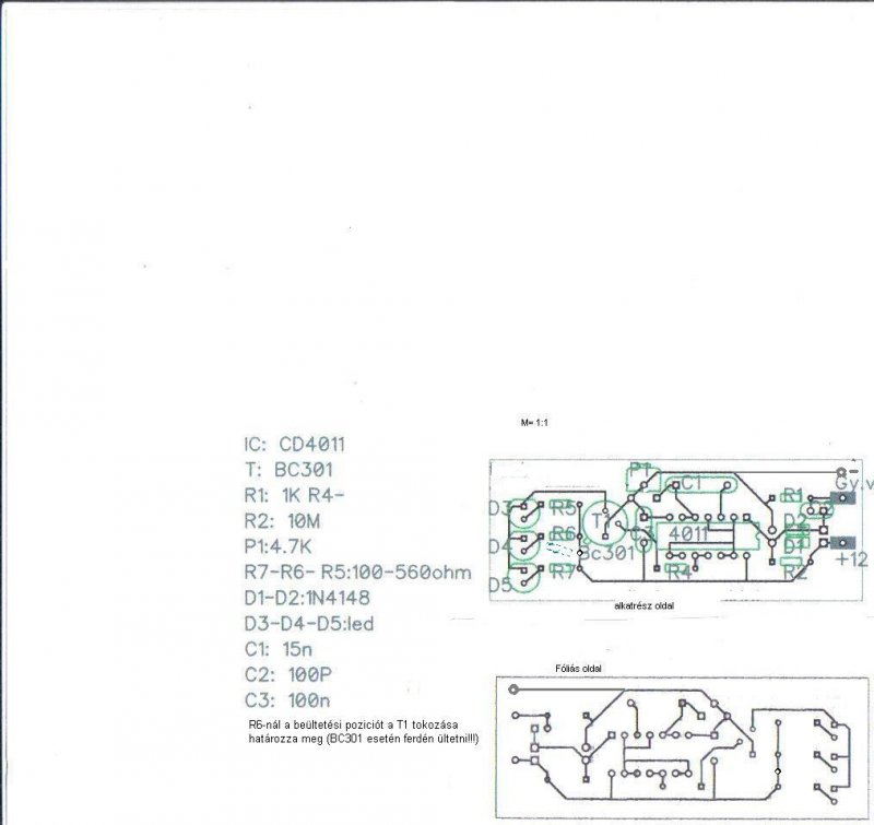 Csontra ugyan azok a tünetek... Készítettem egy fényképet: http://albinolynx.atw.hu/pictures/strobi.JPG Ti észrevesztek valami elkötést? A potméternél a felső-középső láb összekötve, alsó láb IC 6-os lábára. Ez lehet a fényképen zavaros picit, azért írtam le. Tranzisztor lábak, ahogy én értelmeztem. Többi szerintem egyértelmű ás talán nem túl zagyva. watt: holnap kipróbálom, ma már nem tudok kimenni a műhelybe. Ha az IC nem ad ki jelet, akkor mi a teendő? Megörültem, hogy milyen hasznos kis eszköz, használnom is kellene, erre szívok 3 napja...
