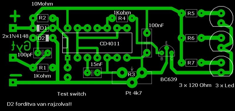 Le ellenőrizné valaki hozzáértő, hogy jó-e ez a nyák terv Wat kolega ledes stroboszkóp -jához. Nekem már jojoznak a szemeim. Több szem többezt lát alapon talán nem szurtam el sehol. M1:1 beültetési oldalrol nézve van a kép