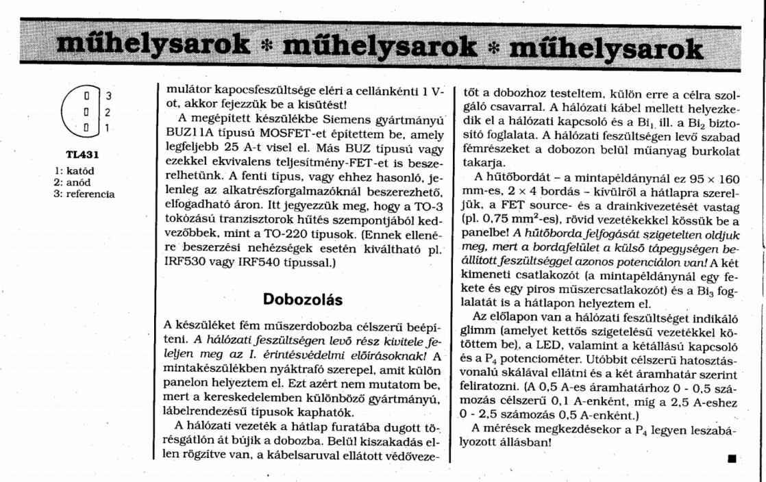 Felrakom a hobbyelektronika 2003/11 havi számában található fet-es műterhelés összes oldalát, nyáktervvel együtt!