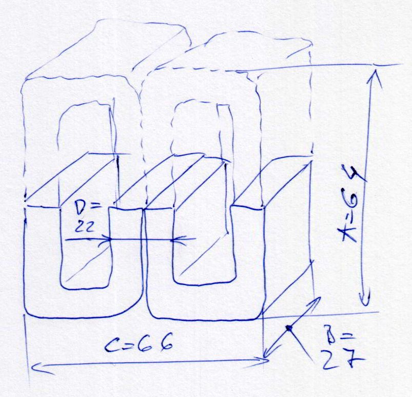 A 2 "U" egymásba fordítva 64 +/- 1mm (nem fértem jól hozzá) Az "UU" méret 66 mm És az "UU"-ból a tekercsen belül futó másik szélesség (ahol a két függőleges szár együtt megy) 22 mm. Remélem kibogarászható, hogy hol mire gondoltam.. ![]()