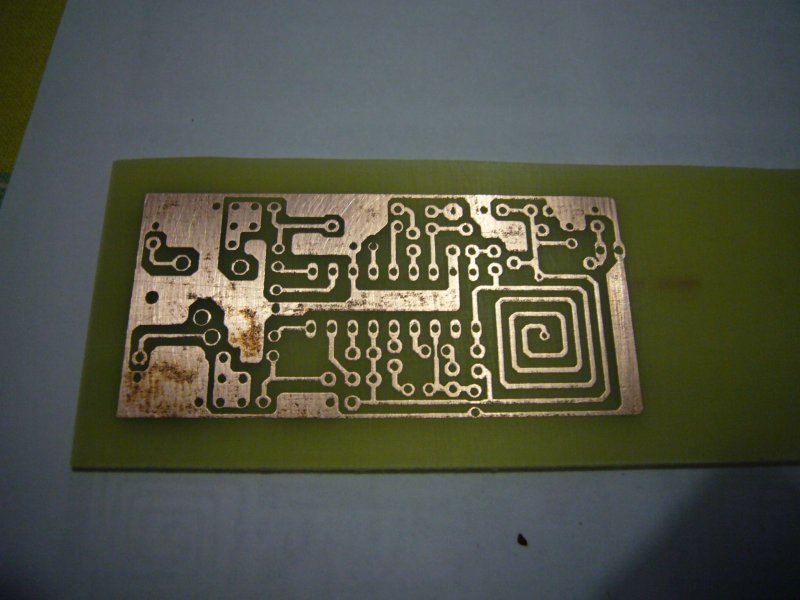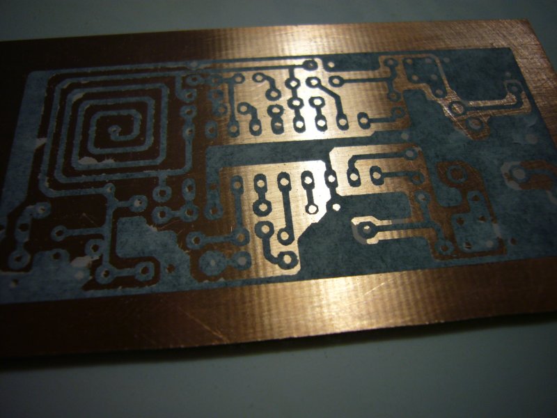 A kétoldalas nyák egyik felét vasaltam, a másikat meg fotóztam. Kérdezhetitek, hogy ennek meg mi értelme. Hát annyi hogy így az egyik oldal nem kellett fújni meg előhívni. Az az oldal amúgy nem olyan finom rajzolatú, csak átkötések vannak, a másik oldal meg tele SM alkatrészekkel. Sajnos a vasalásom nem lett egyenletes, van ahol szétlapult picit a vonal, és úgy tűnik némi tonerpor is volt elszóródva, hiába nem mai darab már a HP 4L.