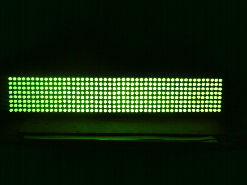 Régebben csináltam egy 16x8 LED-es mátrixot, 5mm-es zöld LED-ekkel. Teljesen processzormentes volt. Lényegében egymás után rakta ki a kockákat. Tehát tudott futó szöveget és anmációt is.
