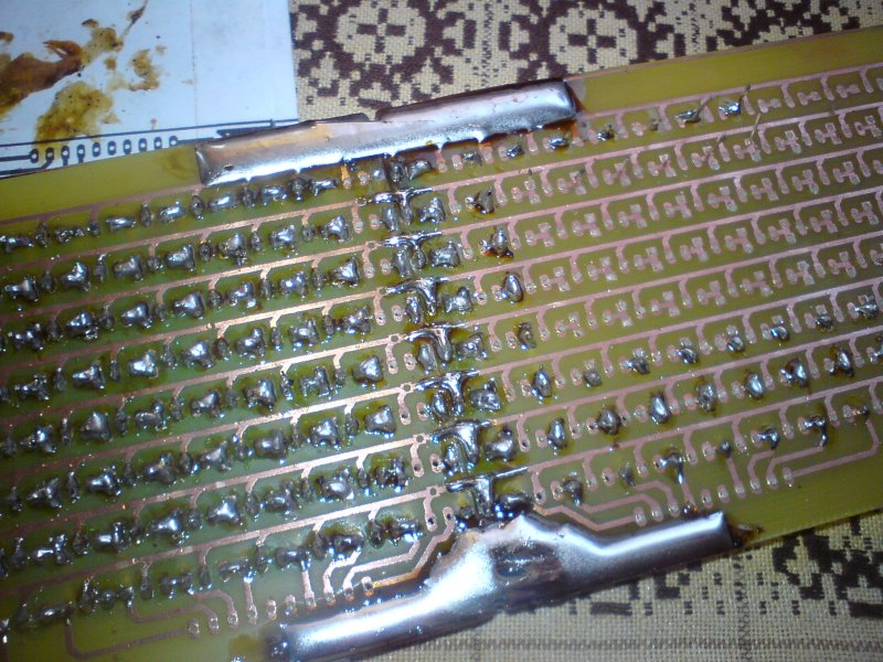 Ez 384 LED-es. A kijelző 2 nyákból áll, és egyoldalas nyákok, így kis gond merült a mátrix összekötésében, így szinte majdnem minden ledhez + átkötések kellettek. Ha jól emlékszem csak a kijelzőbe megközelítőleg 1400 lyukat kellett fúrni. (1200-at minimum, már nem emlékszem pontosan, hogy mennyit) ennyi lyukat kifúrni, és forrasztani...