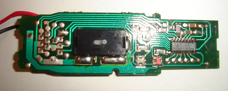 Valóban csak fóliák vannak a forr.oldalon - és épp ez az ami aggasztó. Tehát a "teljesítmény"-félvezető is az IC-n belül lakik. R2 nélkül is kellene valami kisebb fesznek megjelenni az IC-n, (D3 katódon) - ugyanis, ahogy látom az R2 az akku negatívval volt sorosan, erről mérhette vissza a töltőáramot. Értéke a cellakapacitástól függően valahol 1 ohm körül lehetett.