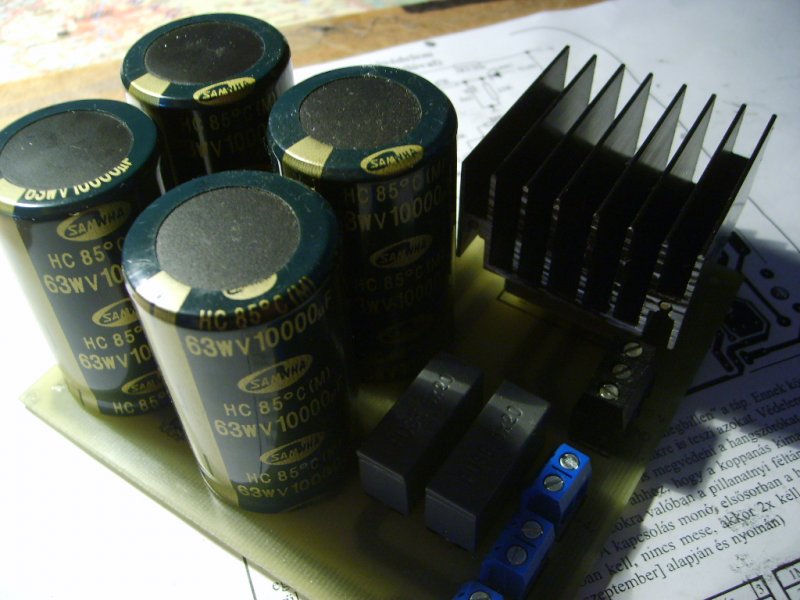 Elmosolyodtam egy kicsit a TDA1558Q "építésén", hiszen csak csatlakoztatni kell a tápot, a be és kimeneteket, meg egy bordát, és kész