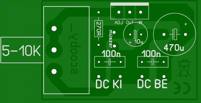 Meg egy aprosag. Ez a 5mA egy resze befolyhat az adjust labba (ha jol emlekszem ez nyelo), masik resze pedig tovabbfolyik a potin. A befolyo resz elhanyagolhato. Tehat az R12 potin is at fog folyni ez az aram! Ami esetleg erdekes, hogy a poti elviseli-e az adott aramvaltozast. Ez is inkabb erdekesseg lesz mert kb 0.4mA a valtozas ami nem hinnem, hogy itt szamottevo lenne.