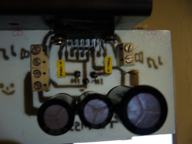 Megépítettem az TDA1554 erősítőt és kicsi gondom van vele. Nem biztos, de lehet hogy a jack dugós monyozásommal tettem tönkre az ic-t. jack aljzatot egy discmanből buheráltam ki, mert ez tutira stereo és mert ami volt itthon az nem annak tünk, hiába méregettem. Na szóval első üzemelésnél, minden drót nélkül jónak nézett ki. Aztán mikor rátettem a zenét, hangszórót akkor kicsi hang jött ki belőle, de kicsit zizegett és úgy viselkedett mintha fuldoklana.... sorry nem tudom jobban magyarázni. Aztán a próbák nagyon rövid sorozata és egyszer csak semmi nem jött ki belőle. Semmit nem vesz fel szinte. Az Ic meghalt nem? Még csak nem is volt meleg az IC. Azért itt a kép, de átnéztem és nekem jónak tűnik. köszi