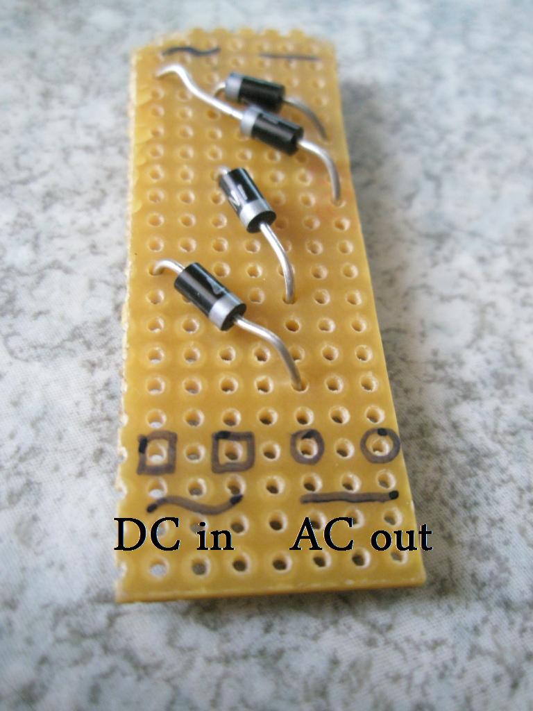 Váltóáramból (30V) szeretnék egyenáramot csinálni, a képen 1000V-os 1A-es egyenirányítók látható, ez így jó, ahogy megcsináltam?